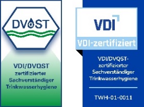 12/2024 Zertifikat VDI/DVQST-zertifizierter Sachverständiger Trinkwasserhygiene TWH-01-0011