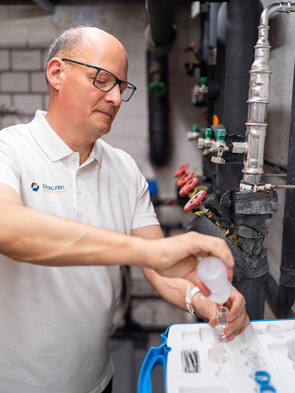 Nach einem telefonischen Erstkontakt findet ein gemeinsamer Ortstermin statt, bei dem Sofortmaßnahmen zum unmittelbaren Schutz der Gesundheit festgelegt, Messgeräte für eine Analyse angebracht und aufgezeichnet werden. Nach Auswertung der Messergebnisse werden gemeinsam weitere Handlungsempfehlungen ausgearbeitet. Dies wird in einer Risikoabschätzung nach §51 der Trinkwasserverordnung für Sie wie auch gegenüber dem Gesundheitsamt dokumentiert.
